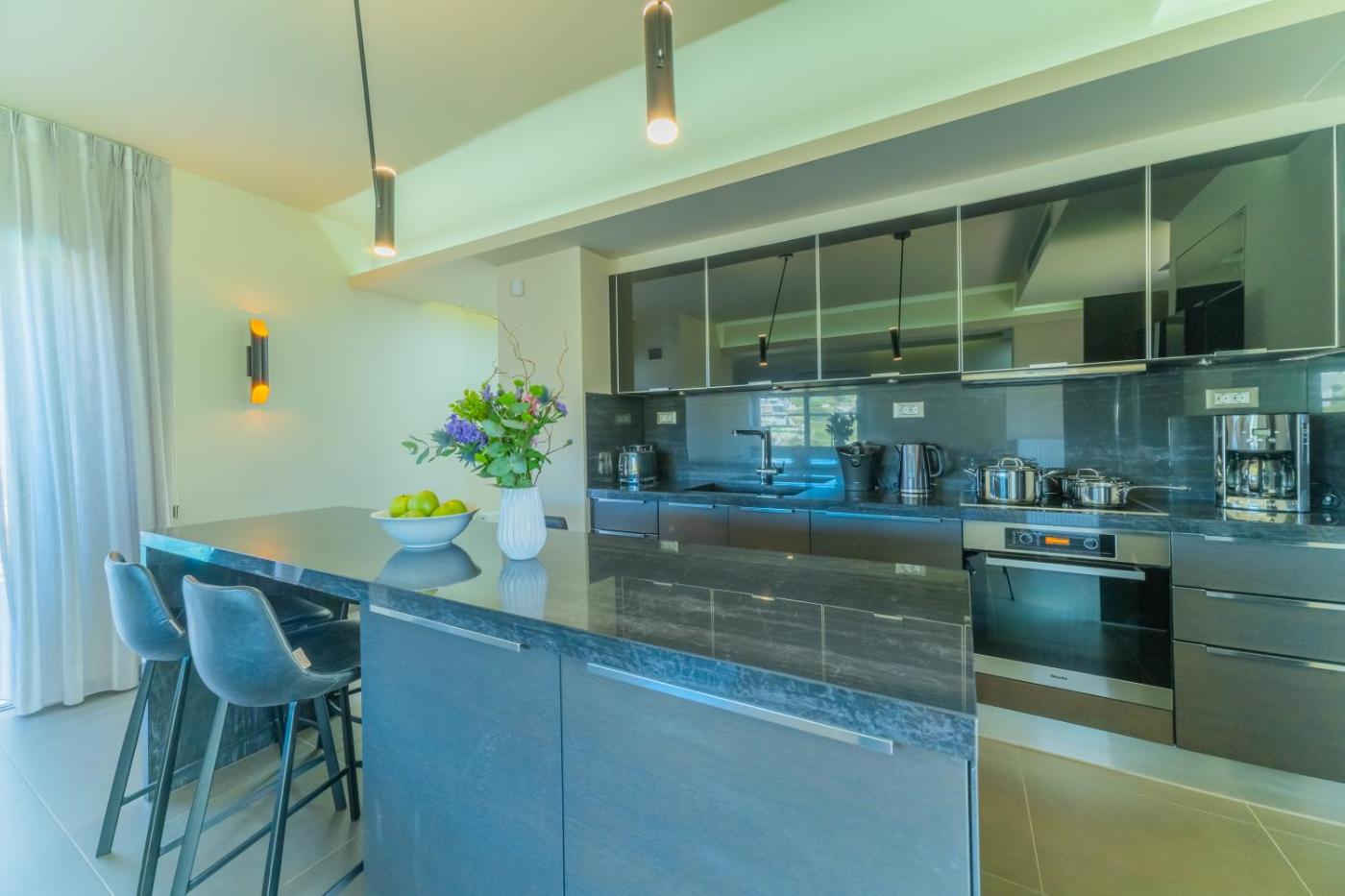 Villa with Private Pool. This elegantly decorated villa boasts a private pool and offers unobstructed sea views. It includes: - a furnished balcony on the top floor - 4 bedrooms, 2 with en-suite bathrooms - 2 fully equipped kitchens with dining area - 2 spacious living rooms with a fireplace - free WiFi - free private parking - satellite TV.