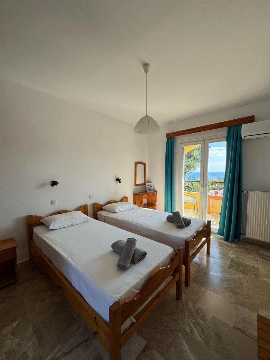 One-Bedroom Apartment. Boasting a private entrance, this air-conditioned apartment comes with a kitchenette, 1 bedroom and 1 bathroom with a shower and a hairdryer. In the fully equipped kitchenette, guests will find a stovetop, a refrigerator, kitchenware and an electric kettle. Featuring a terrace with sea views, this apartment also features a wardrobe and a flat-screen TV. The unit has 2 beds.