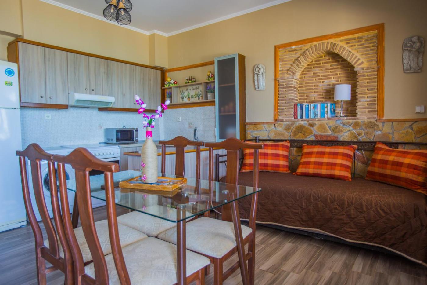 One-Bedroom Apartment. Offering views of the sea and Kefalonia Island, this apartment has an air-conditioned bedroom, a bathroom with hairdryer, a fully equipped kitchen and a TV. It opens out to a garden with dining area, shower and sun beds. ;
