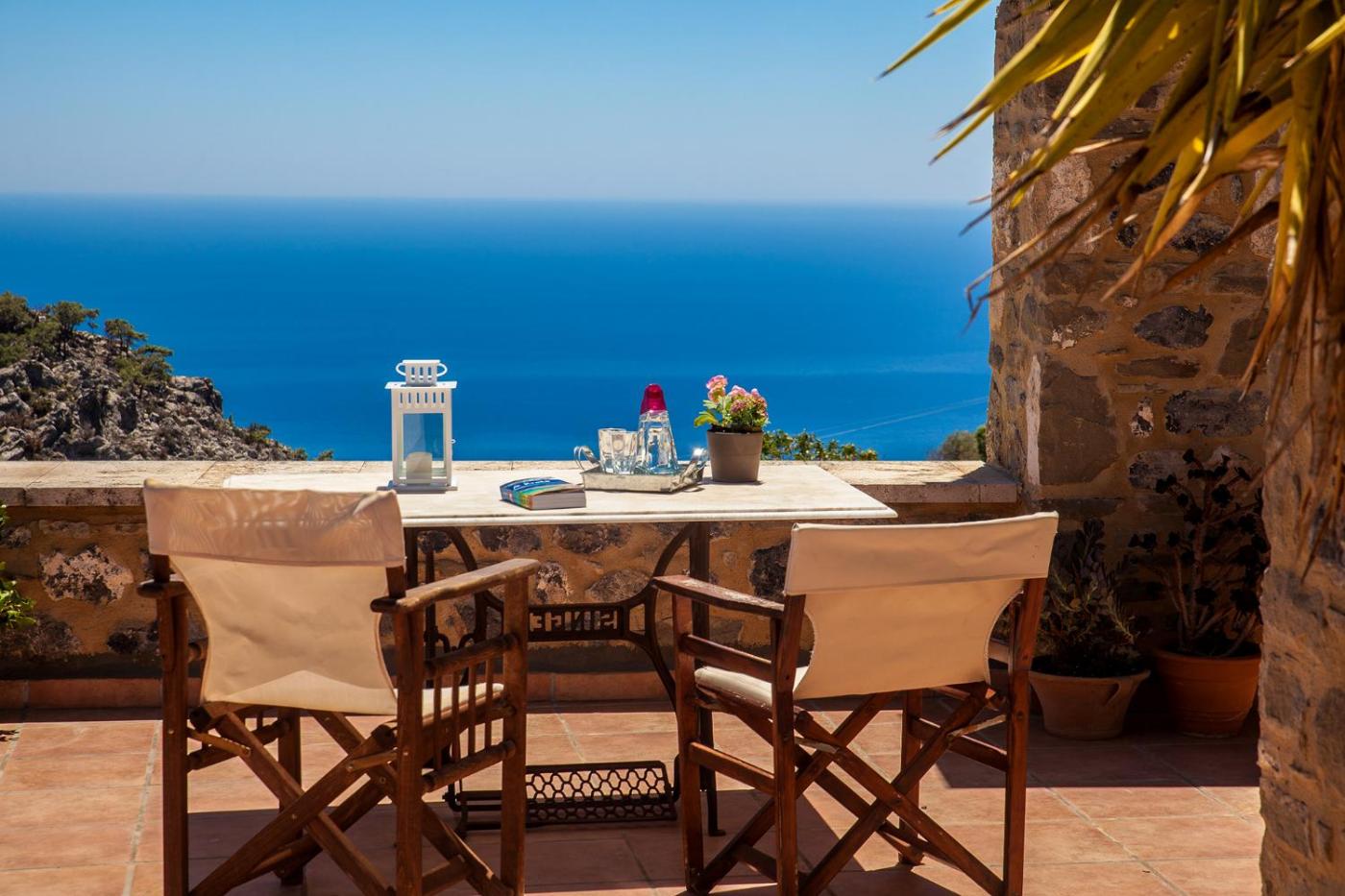 Four-Bedroom Villa. This traditional, stone-built villa features a private courtyard and a 100-m2 rooftop terrace with panoramic views of the Libyan Sea. It consists of 4 bedrooms, a living room with a fireplace and a sofasingle bed, fully equipped kitchen with dining area and 2 bathrooms. It is fitted with beamed ceilings and carefully chosen furnishings. A basket with local, homemade products to prepare breakfast, a bottle of virgin olive oil and raki drink are offered to guests. Please note that in case of reservation is for 2 guests, only 1 bedroom and 1 bathroom will be available