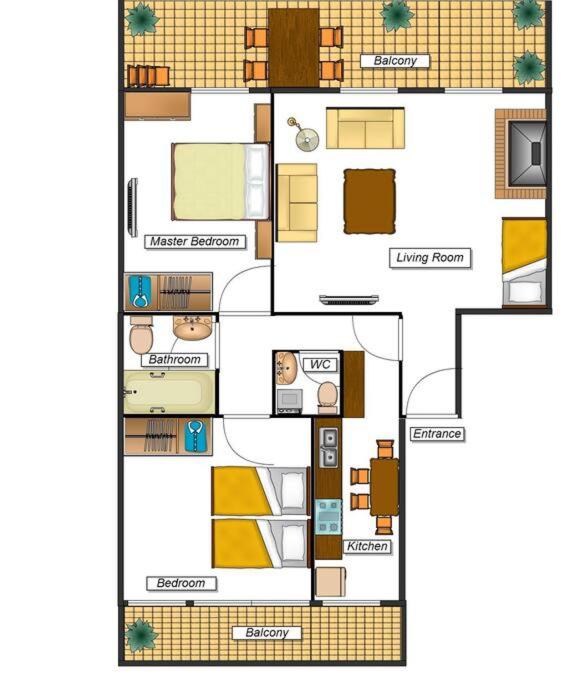 Two-Bedroom Apartment. This apartments standout feature is the fireplace. Meals can be prepared in the well-fitted kitchen, which is fitted with a stovetop, a refrigerator, a dishwasher and an oven. The spacious air-conditioned apartment offers a flat-screen TV, a washing machine, a tea and coffee maker and a seating area. The unit has 4 beds.