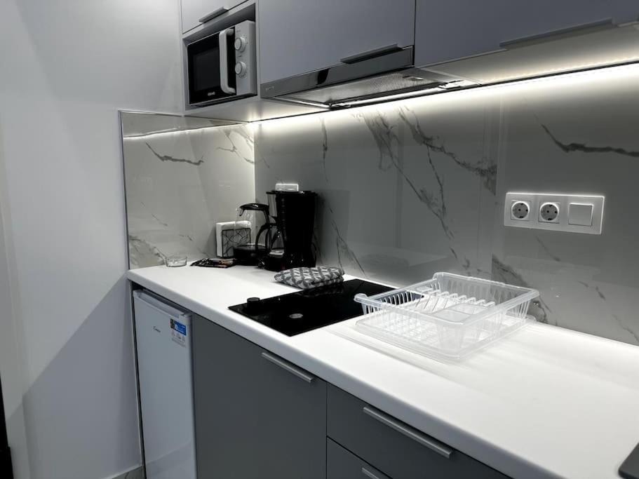 One-Bedroom Apartment. Meals can be prepared in the kitchen, which features a stovetop, a refrigerator, kitchenware and a microwave. This apartment is air-conditioned and has a seating area with a flat-screen TV, a washing machine, a private entrance, soundproof walls, as well as a tea and coffee maker. The unit has 2 beds.