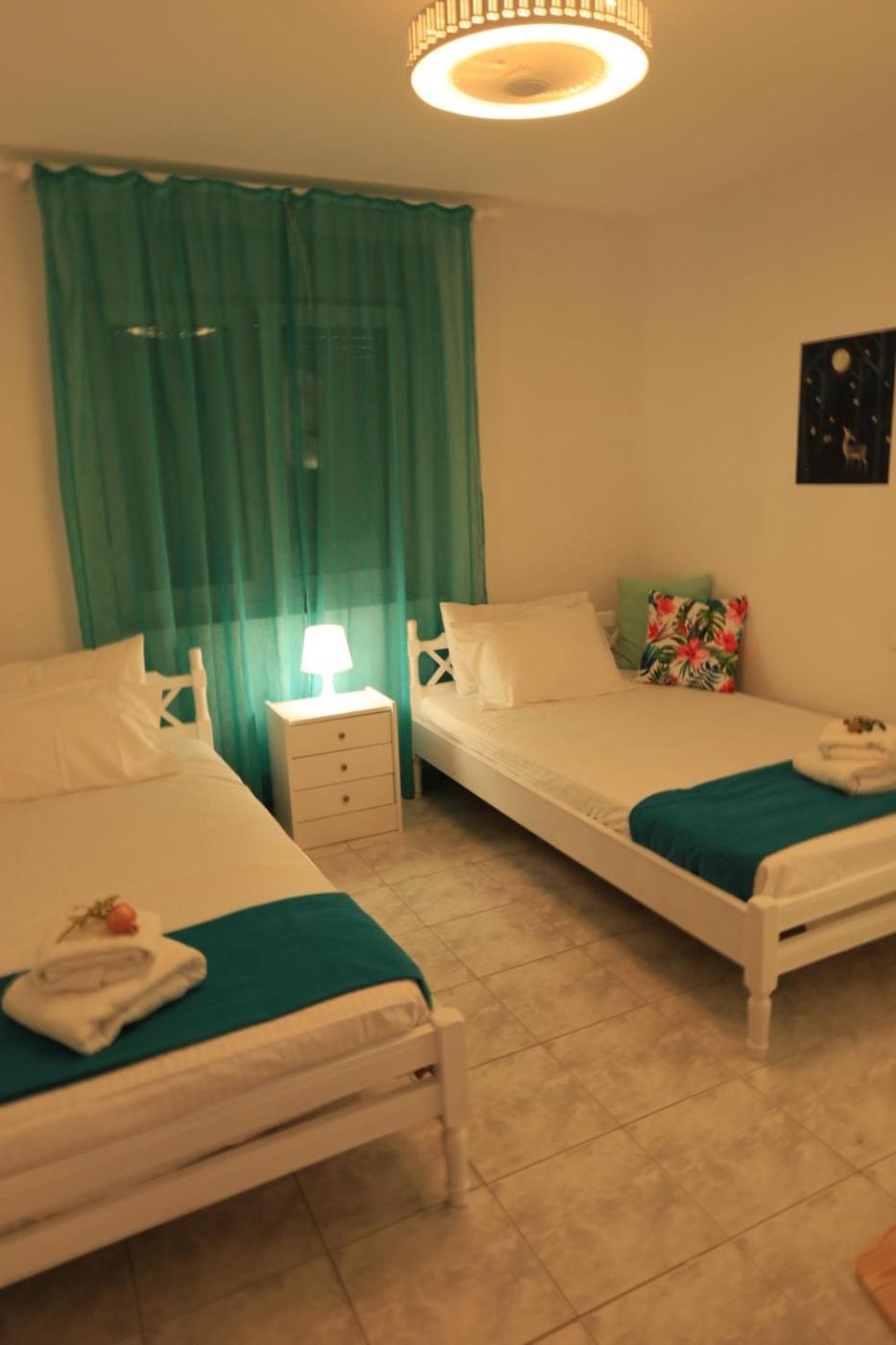 Two-Bedroom Apartment. Boasting a private entrance, this air-conditioned apartment comes with 1 living room, 2 separate bedrooms and 1 bathroom with a bath and a shower. Guests can make meals in the kitchen that features a stovetop, a refrigerator, kitchenware and an oven. Featuring a terrace with garden views, this apartment also features a washing machine and a flat-screen TV. The unit has 4 beds.