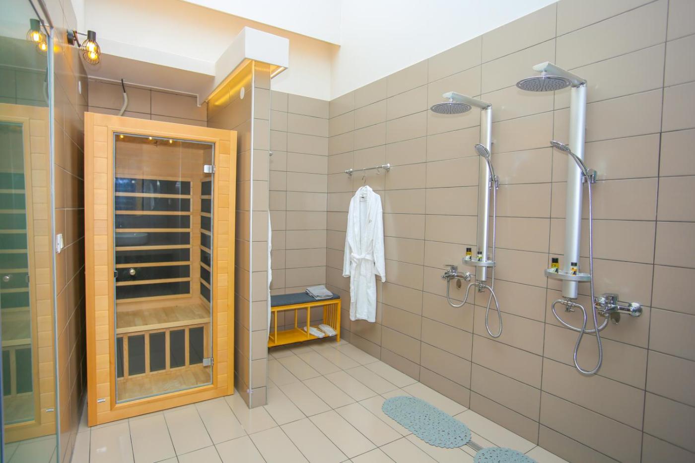 Deluxe Double Room. The sauna is the standout feature of this double room. Featuring free toiletries and bathrobes, this double room includes a private bathroom with a shower, a hairdryer and slippers. The double room features air conditioning, soundproof walls, a tea and coffee maker, a wardrobe and a flat-screen TV. The unit has 1 bed. ;