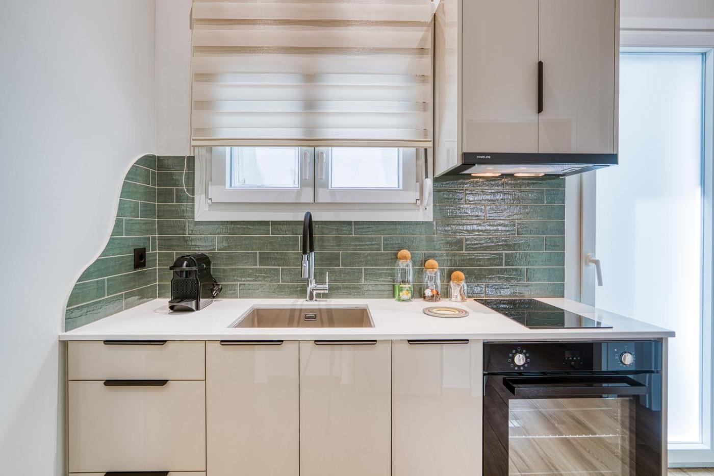 One-Bedroom Apartment. This apartment includes 1 living room, 1 separate bedroom and 1 bathroom with a walk-in shower and free toiletries. In the kitchen, guests will find a stovetop, a refrigerator, kitchenware and an oven. This apartment is air-conditioned and has a seating area with a flat-screen TV, a washing machine, soundproof walls, a tea and coffee maker, as well as a wardrobe. The unit has 2 beds.