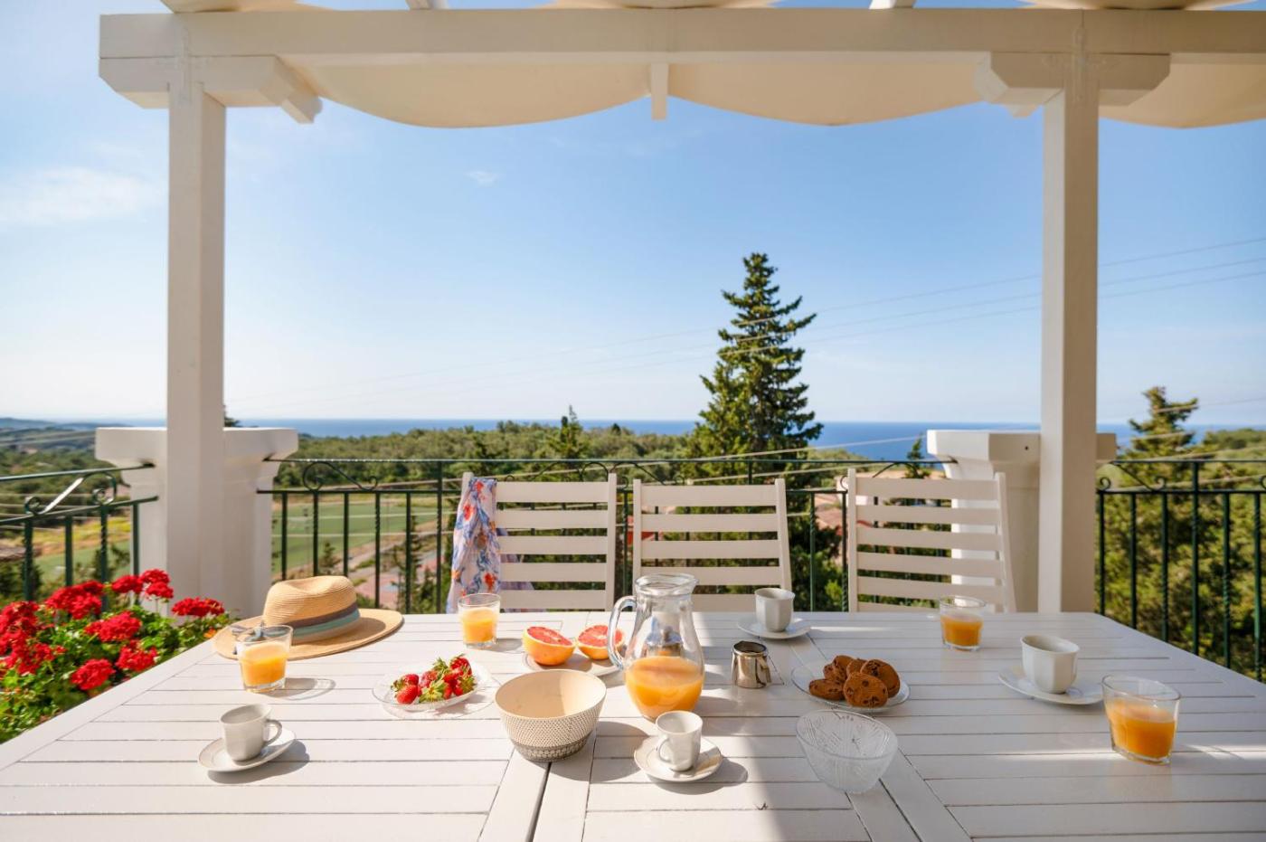 Four-Bedroom Villa with Private Pool. Featuring a private pool and a stone-paved terrace, this 17-century, split-level villa is fitted with stone walls and beamed ceilings. It enjoys views over the Ionian Sea, the pool and the mountain and includes: -a living room with fireplace -4 separate bedrooms -a fully equipped kitchen with dining area -4 en-suite bathrooms -a washing machine and a dishwasher -a TV with DVD player.