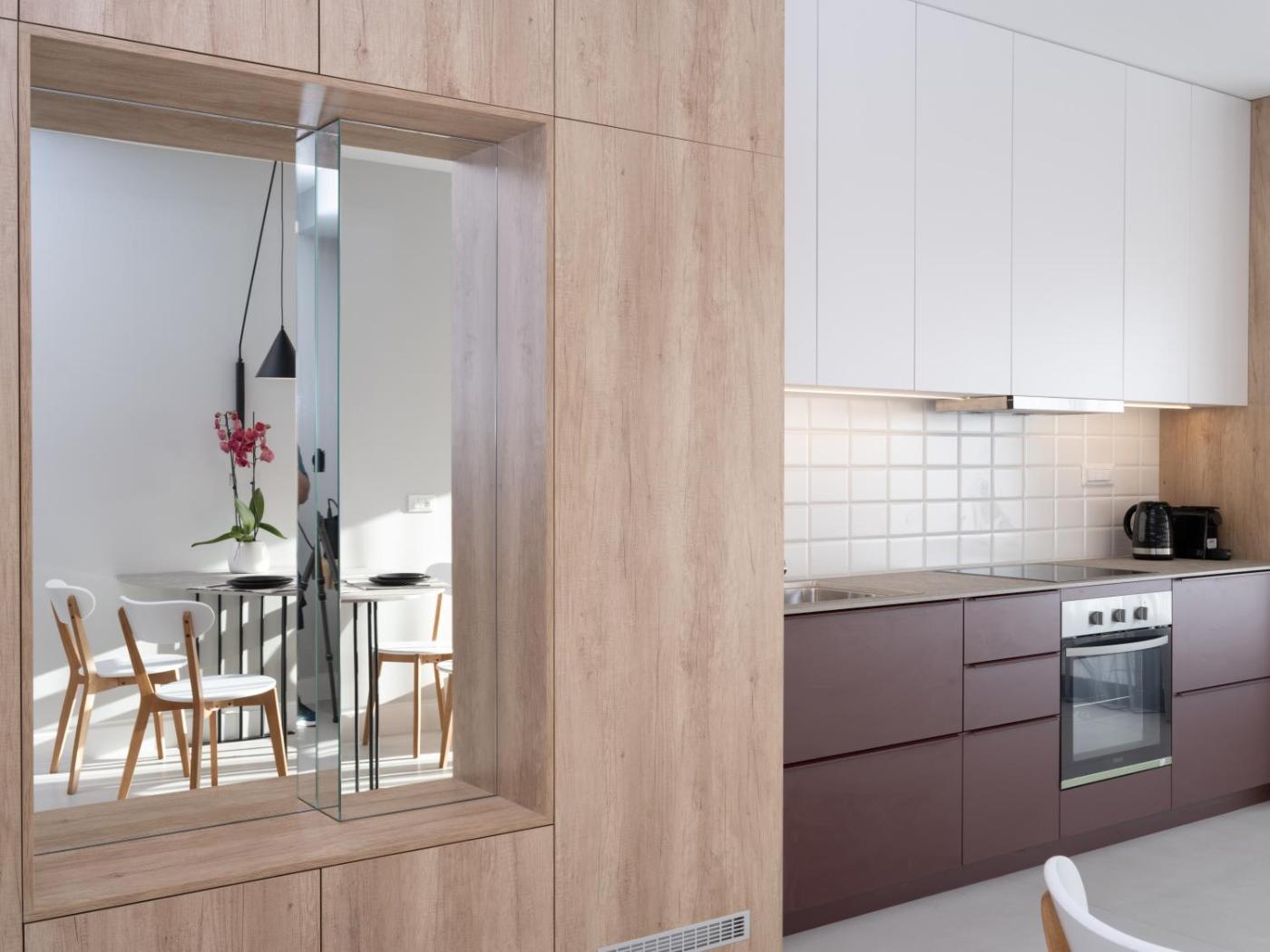 One-Bedroom Apartment. Boasting a private entrance, this air-conditioned apartment comes with 1 living room, 1 separate bedroom and 1 bathroom with a shower and a hairdryer. Guests can make meals in the kitchen that features a stovetop, a refrigerator, kitchenware and an oven. This apartment has a washing machine, flat-screen TV with streaming services, city views, as well as winechampagne for guests. The unit has 2 beds.
