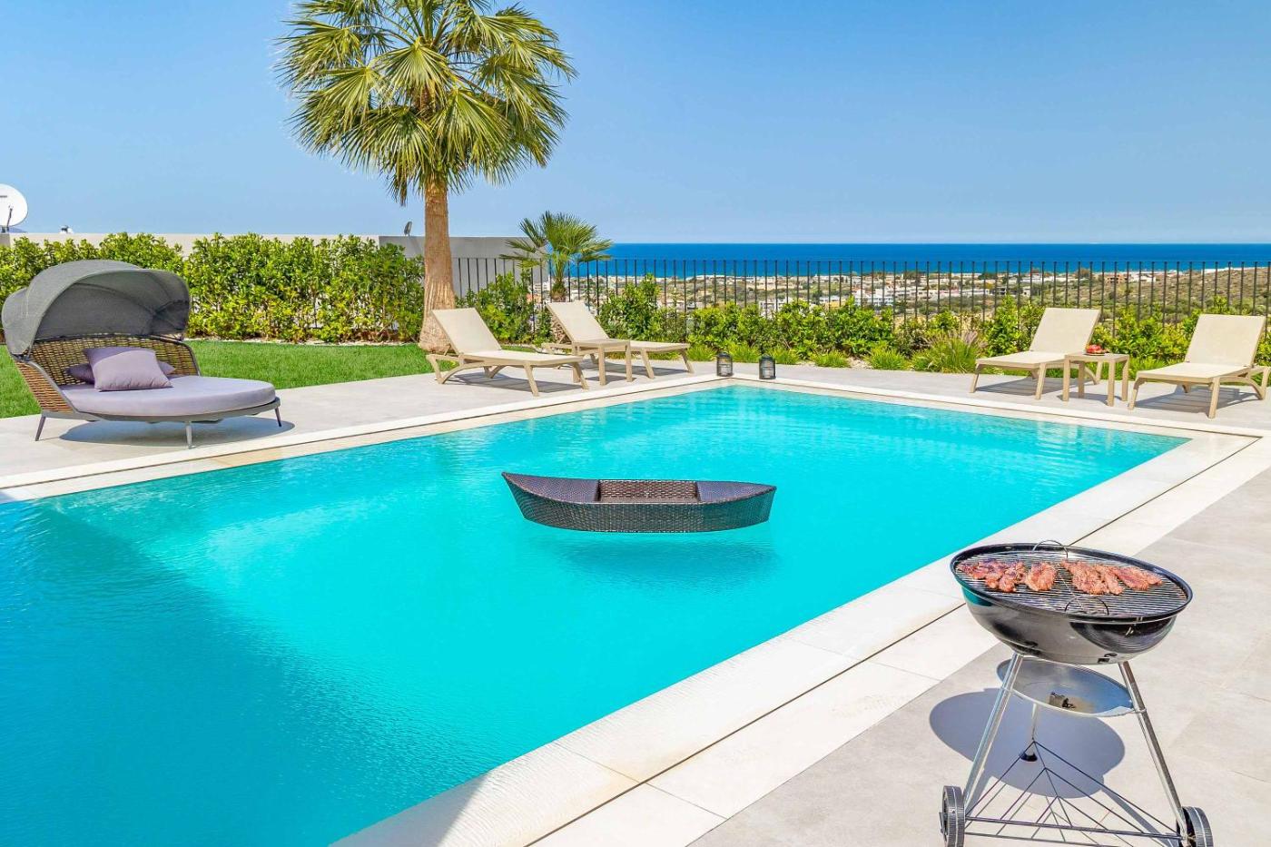 Guests can enjoy the outdoor swimming pool at the villa.
