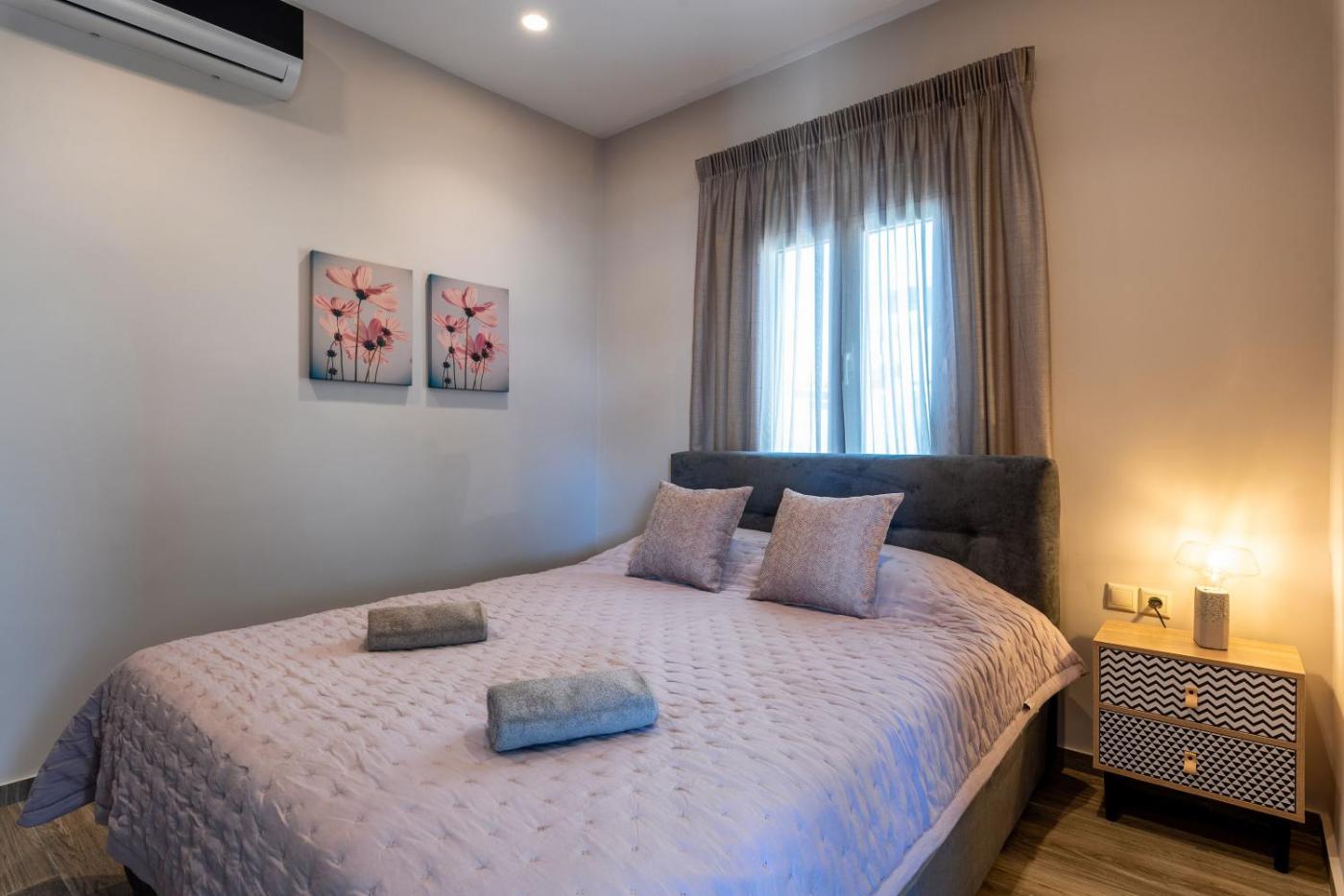 Two-Bedroom Apartment. Boasting a private entrance, this air-conditioned apartment comes with a kitchen, 2 bedrooms and 1 bathroom with a walk-in shower and a hairdryer. The well-equipped kitchen has a stovetop, a refrigerator, kitchenware and an oven. Featuring a terrace with sea views, this apartment also features a washing machine and a flat-screen TV with satellite channels. The unit has 2 beds.