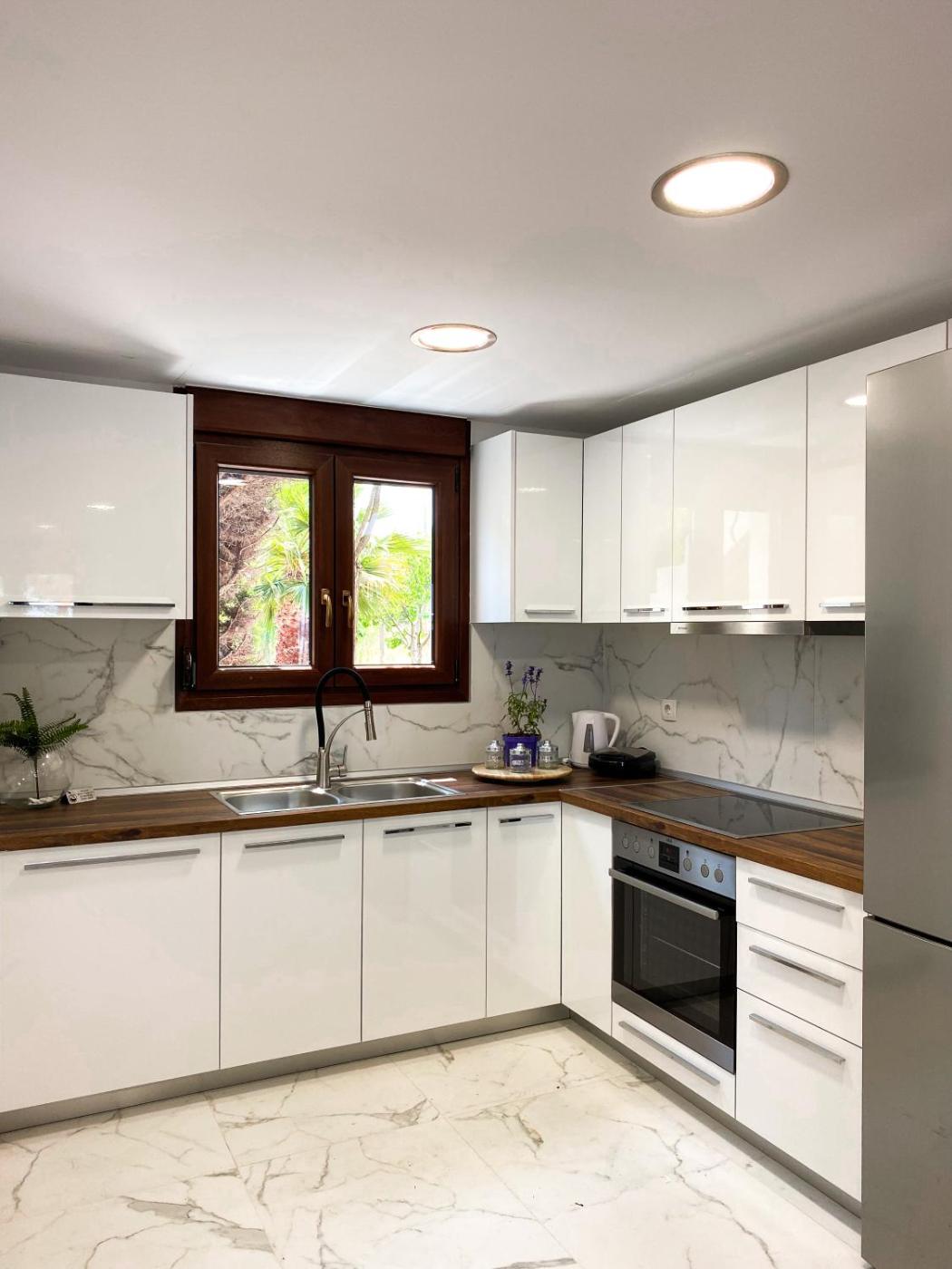 Two-Bedroom Apartment. Guests will have a special experience as this apartment features a hot tub and a spa bath. Featuring a private entrance, this air-conditioned apartment is comprised of 1 living room, 2 separate bedrooms and 1 bathroom with a shower and a bidet. In the kitchen, guests will find a stovetop, a refrigerator, kitchenware and an oven. The spacious apartment offers a washing machine, soundproof walls, a tea and coffee maker as well as a terrace with sea views. The unit offers 4 beds.
