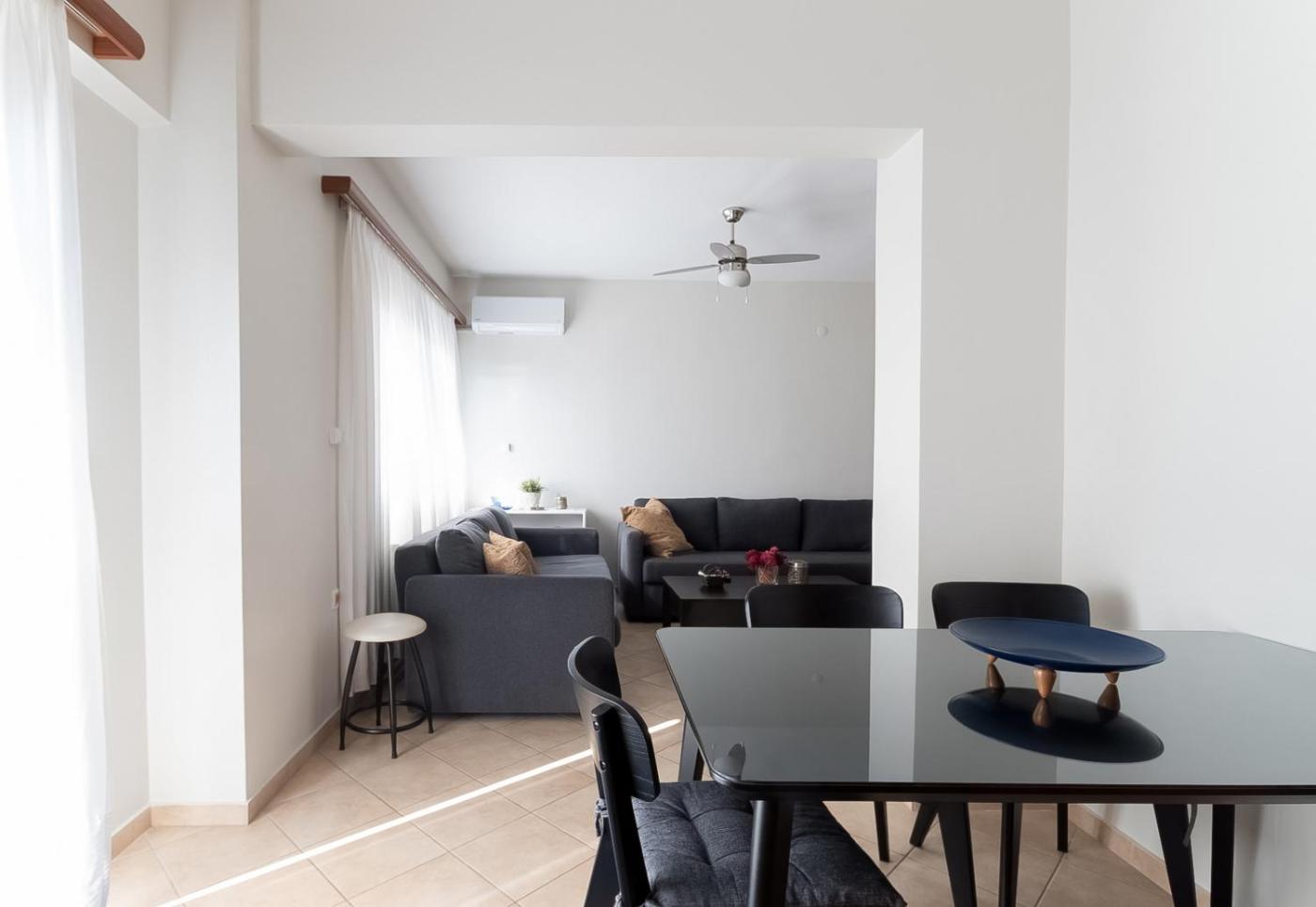 One-Bedroom Apartment. Boasting a private entrance, this air-conditioned apartment comes with 1 living room, 1 separate bedroom and 1 bathroom with a bath and a hairdryer. In the fully equipped kitchen, guests will find a stovetop, a refrigerator, kitchenware and an oven. The spacious apartment features a washing machine, soundproof walls, a seating area as well as a terrace with sea views. The unit has 3 beds.