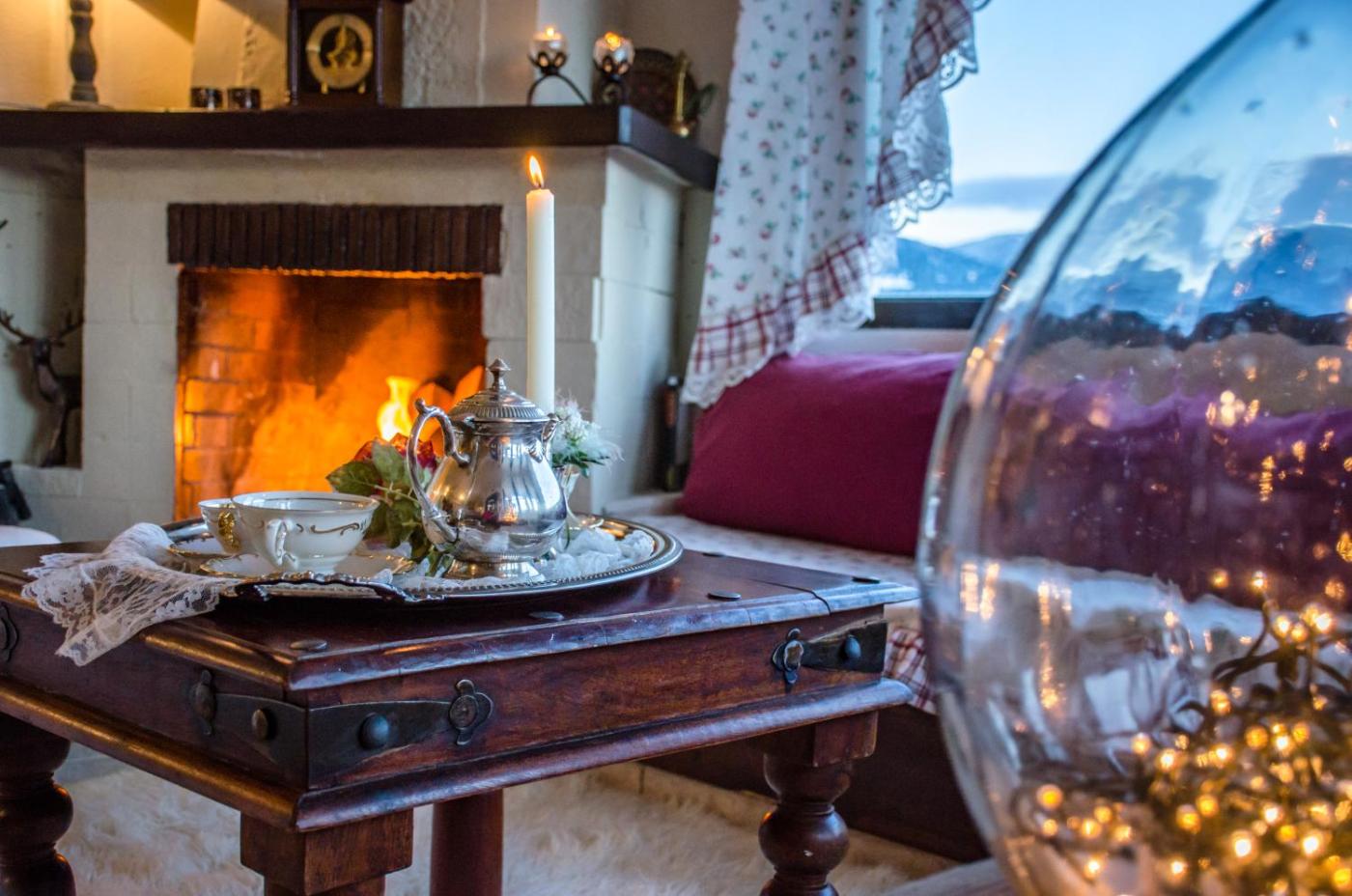 Quadruple Room with Mountain View. The fireplace is a top feature of this quadruple room. Guests will find a stovetop, a refrigerator, kitchenware and a tea and coffee maker in the well-fitted kitchenette. The quadruple room also includes a barbecue. The spacious quadruple room features a private entrance, soundproof walls, a terrace with garden views as well as a private bathroom boasting a shower. The unit has 3 beds.