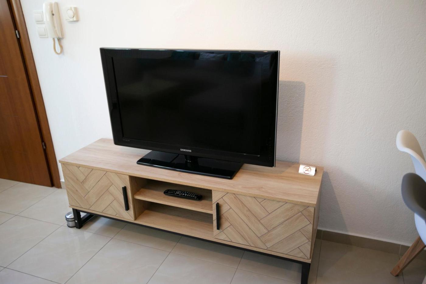 One-Bedroom Apartment. This air-conditioned apartment includes 1 living room, 1 separate bedroom and 1 bathroom with a bath or a shower. Guests will find a stovetop, a refrigerator, kitchenware and a tea and coffee maker in the kitchen. The apartment also features a barbecue. Boasting a terrace with sea views, this apartment also offers a washing machine and a flat-screen TV. The unit has 2 beds.