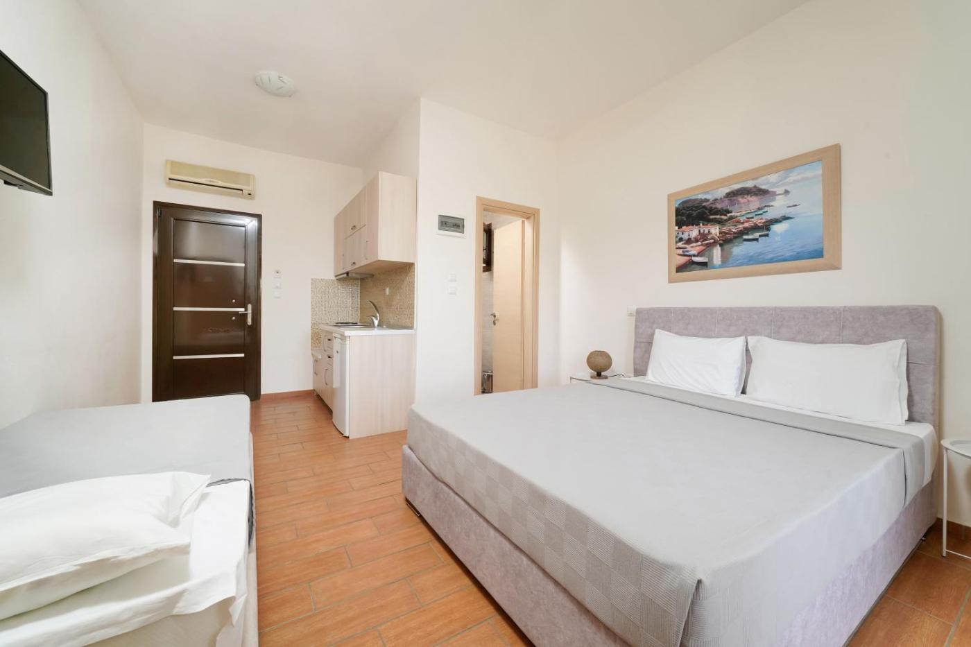 Standard Triple Studio. A kitchenette equipped with a refrigerator, kitchenware and a tea and coffee maker is available for cooking and storing food. The studio provides air conditioning, a private entrance, a balcony with garden views as well as a private bathroom featuring a bath. The unit offers 2 beds.