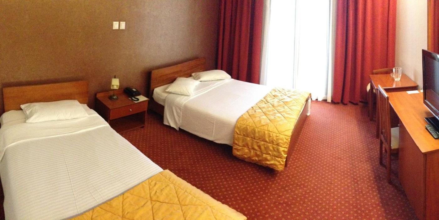 Double or Twin Room. Opening to a balcony, this air-conditioned room is equipped with a fridge, a safe and a flat-screen TV with satellite channels. The private bathrooms come with bath tub, free toiletries and hairdryer. Free Wi-Fi is available. ;