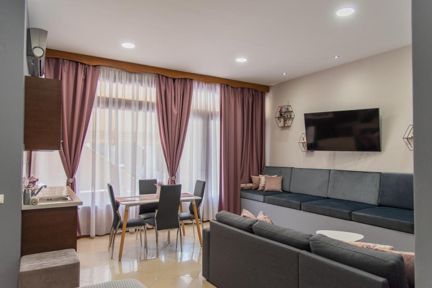 One-Bedroom Apartment. Featuring a private entrance, this air-conditioned apartment comprises 2 living rooms, 1 separate bedroom and 1 bathroom with a shower and a hairdryer. Meals can be prepared in the kitchen, which comes with a stovetop, a refrigerator, kitchenware and an oven. Boasting a balcony, this apartment also provides a washing machine, soundproof walls and a flat-screen TV. The unit offers 2 beds.