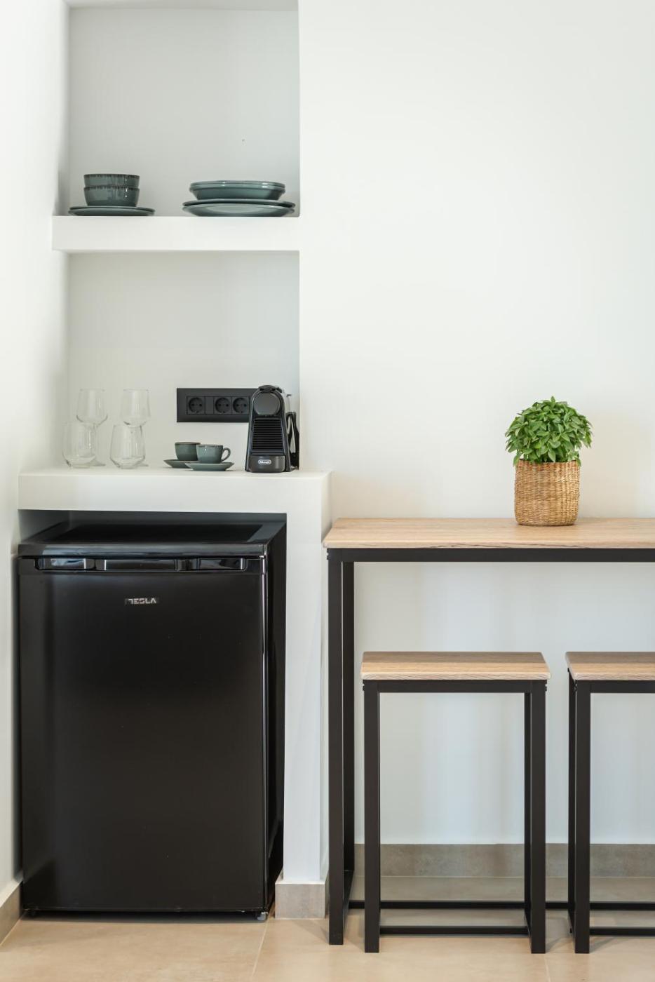 King Suite with Sea View. This suite features a pool with a view and a hot tub. Boasting a private entrance, this air-conditioned suite features 1 living room, 1 separate bedroom and 1 bathroom with a shower and a hairdryer. The well-fitted kitchenette features a stovetop, a refrigerator, kitchenware and a tea and coffee maker. The unit has soundproof walls, sea views, a terrace and winechampagne is offered for guests. The unit has 1 bed. ;