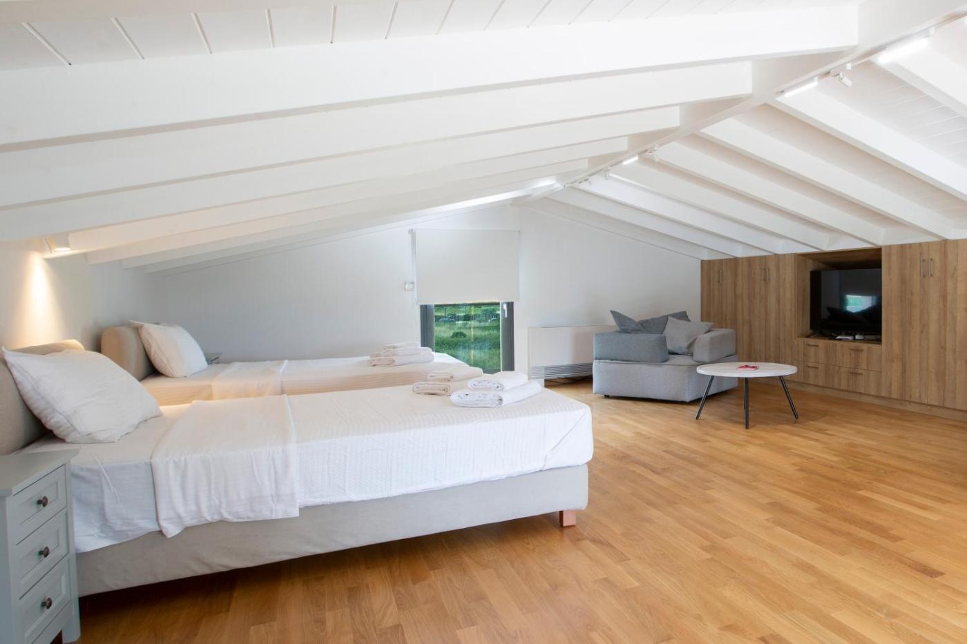 Villa with Private Pool. This villa offers a infinity pool. Featuring a private entrance, this air-conditioned villa is comprised of 1 living room, 3 separate bedrooms and 2 bathrooms with a shower and a hairdryer. Guests will find a stovetop, a refrigerator, a dishwasher and kitchenware in the kitchen. The villa also has a barbecue. The unit features a washing machine, garden views, a terrace and winechampagne is featured for guests. The unit offers 4 beds.