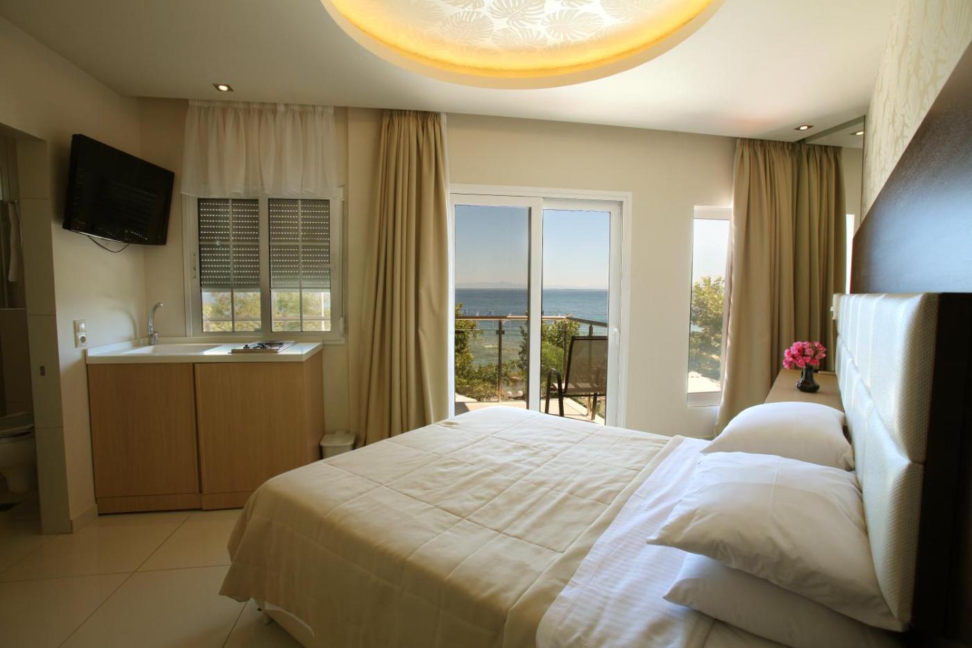 Studio (4 Adults). Overlooking the Aegean Sea from its private balcony, this modernly decorated studio has a seating area and a kitchenette with fridge. An LCD satellite TV, air conditioning and a hairdryer are available. Please note that the kitchenette can only be used for the preparation of breakfast and light meals. ;