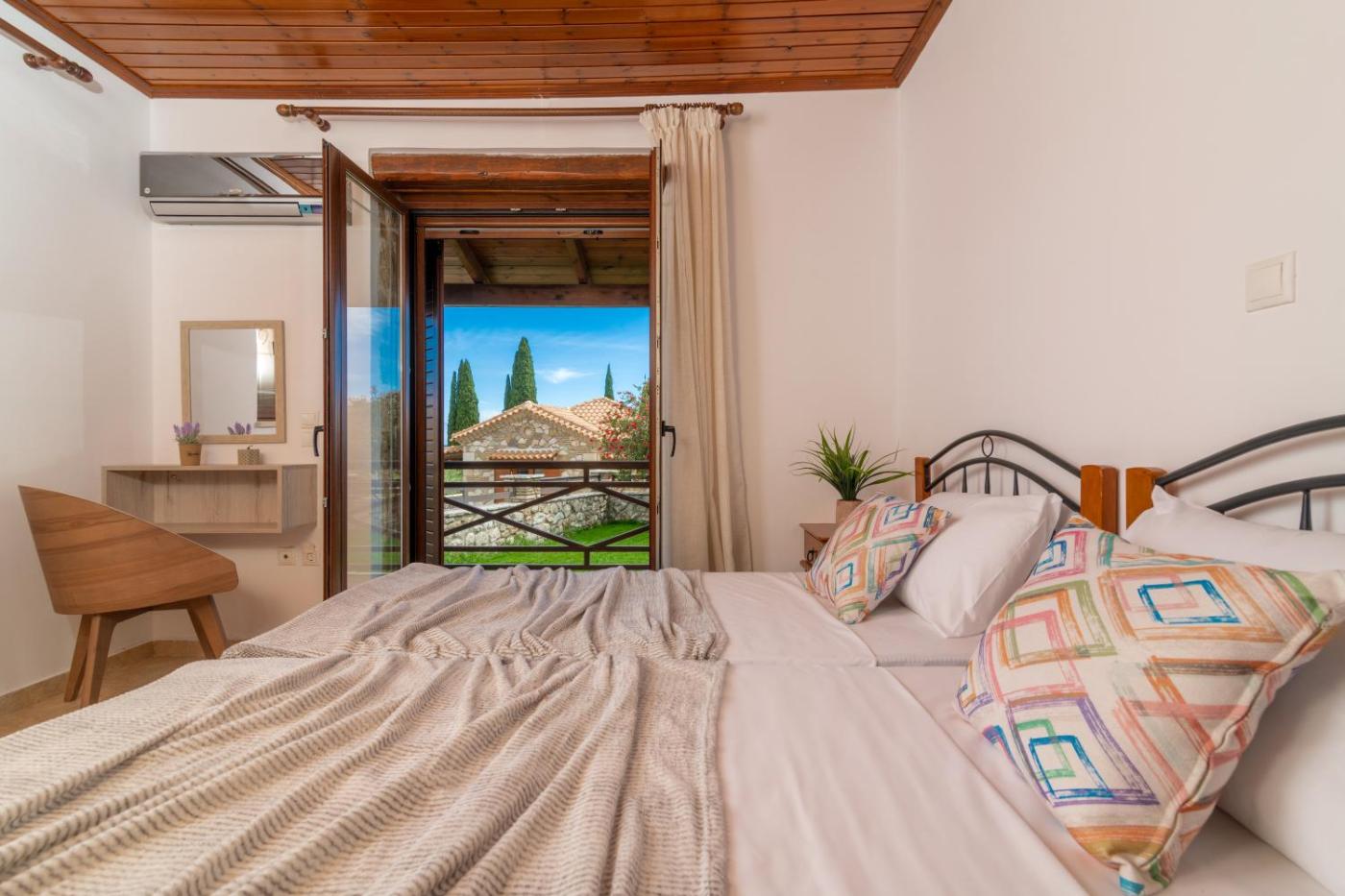 Three-Bedroom Villa. Guests will have a special experience as this villa features a pool with a view and a fireplace. Featuring a private entrance, this air-conditioned villa is comprised of a kitchen, 3 bedrooms and 2 bathrooms with a bath and a shower. Guests will find a stovetop, a refrigerator, a dishwasher and kitchenware in the well-fitted kitchen. The villa also has a barbecue. Boasting a terrace with garden views, this villa also offers a washing machine and a flat-screen TV with streaming services. The unit offers 4 beds.