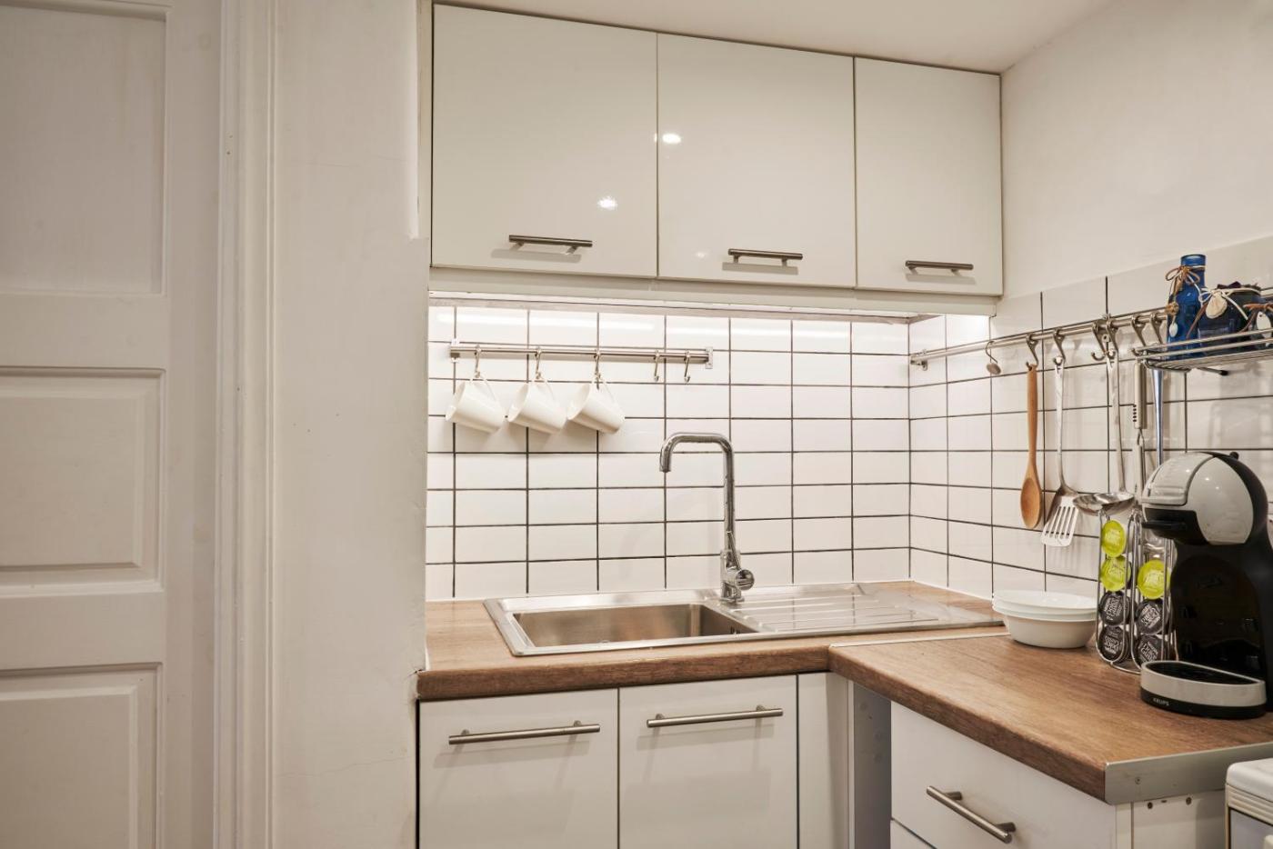 The air-conditioned apartment consists of 1 bedroom, a living room, a fully equipped kitchen with an oven and a coffee machine, and 1 bathroom with a shower and slippers. A flat-screen TV with cable channels is offered. The apartment offers bed linen, towels and housekeeping service.