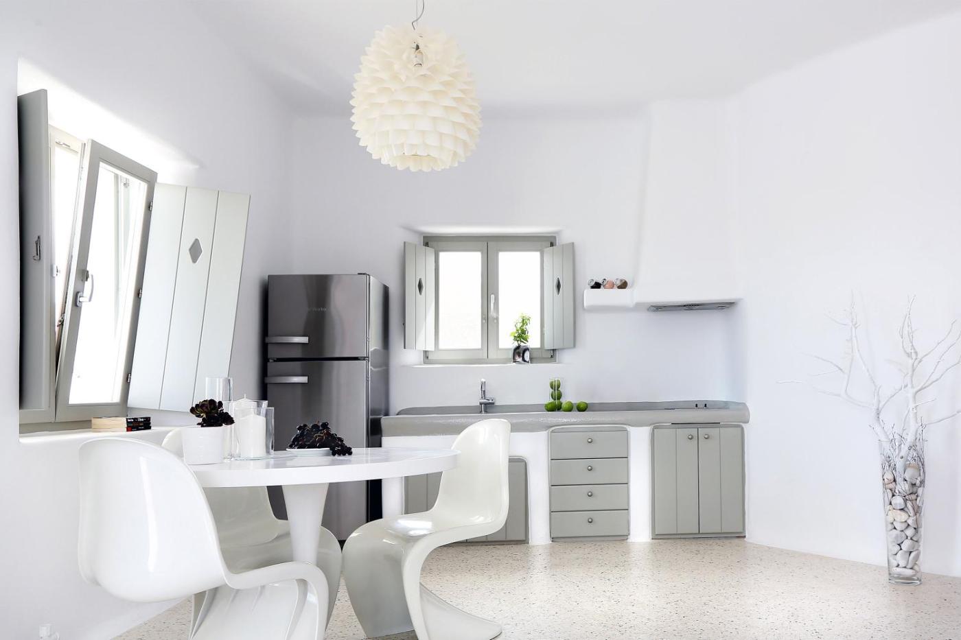 White Villa. This villa features a pool with a view, hot tub and spa bath. Boasting a private entrance, this air-conditioned villa comes with 1 living room, 1 separate bedroom and 1 bathroom with a shower and a hairdryer. The well-fitted kitchenette has a stovetop, a refrigerator, kitchenware and a toaster. Featuring a terrace with sea views, this villa also features soundproof walls and a flat-screen TV with streaming services. The unit has 3 beds.
