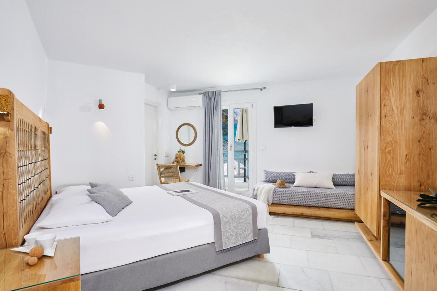 Superior Triple Room with Sea View. This air-conditioned triple room is comprised of a flat-screen TV with satellite channels, a private bathroom as well as a terrace with sea views. The unit has 2 beds.