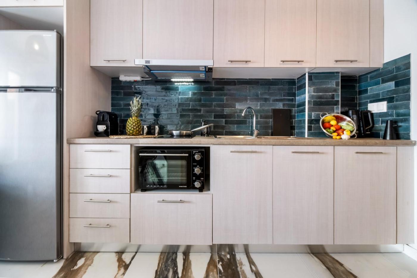 Superior Studio. The fully equipped kitchen features kitchenware, an oven and an electric kettle. This air-conditioned studio includes a TV with cable channels, a private bathroom as well as a balcony with sea views. The unit offers 2 beds.