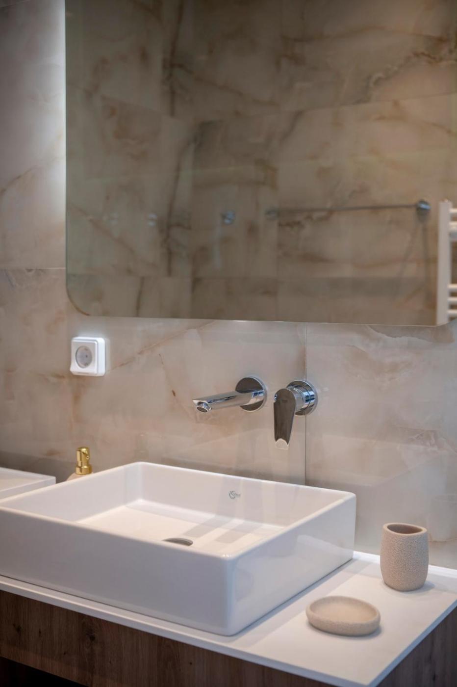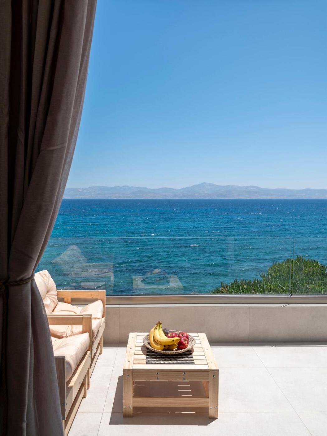 One-Bedroom Apartment. Featuring a private entrance, this air-conditioned apartment consists of 1 living room, 1 separate bedroom and 1 bathroom with a walk-in shower and a hairdryer. The fully equipped kitchen has a stovetop, a refrigerator, kitchenware and an oven. The unit features a washing machine, sea views, a terrace and winechampagne is provided for guests. The unit offers 2 beds.