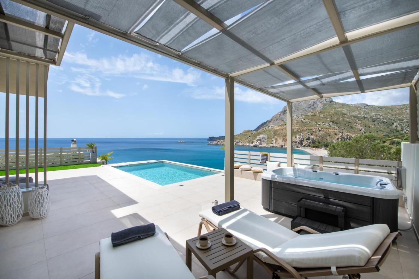 The villa with a terrace and sea views features 1 bedroom, a living room, a flat-screen TV, an equipped kitchen with a dishwasher and an oven, and 1 bathroom with a hot tub. Towels and bed linen are provided in the villa. The property has an outdoor dining area.