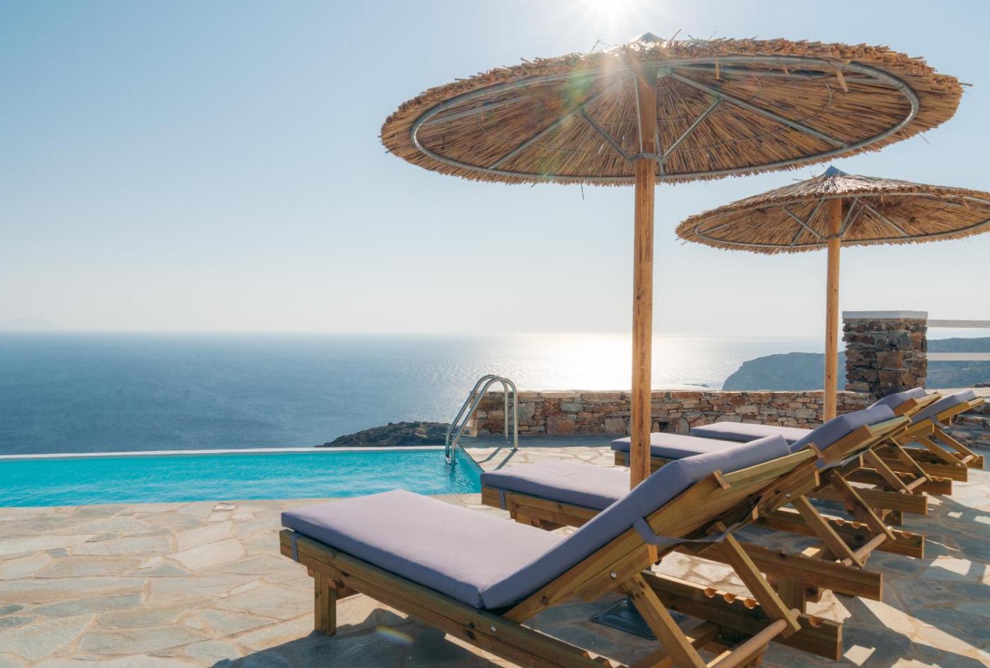 Two-Bedroom Villa. The pool with a view and fireplace are the standout features of this villa. Boasting a private entrance, this air-conditioned villa features 1 living room, 2 separate bedrooms and 2 bathrooms with a shower and a hairdryer. In the kitchen, guests will find a stovetop, a refrigerator, kitchenware and an oven. Featuring a terrace with sea views, this villa also features a washing machine and a flat-screen TV. The unit has 3 beds.