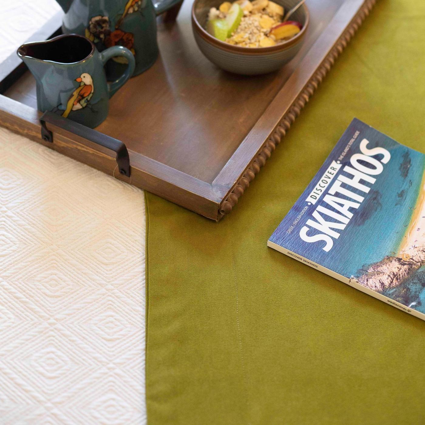 Deluxe Double Room. Opening to a private balcony overlooking the garden or Skiathos Town, this air-conditioned room is fitted with Coco-Mat pillows and an LCD 32" TV with satellite channels. It offers: -a hairdryer -swimming pool towels -slippers -bathrobes. ;
