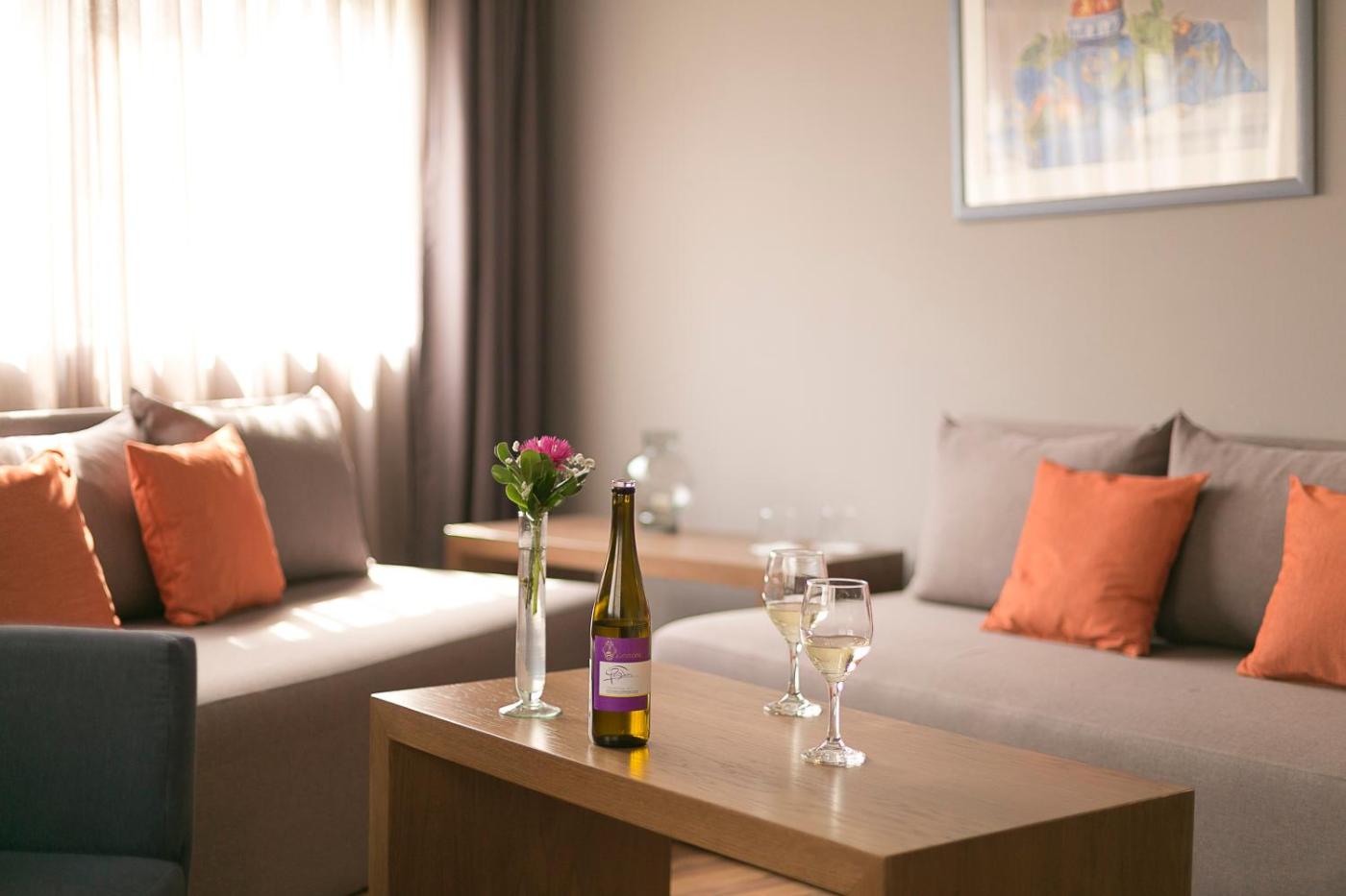 Deluxe Suite with Sea View. This suite consists of 1 living room, 1 separate bedroom and 1 bathroom with a shower and free toiletries. The air-conditioned suite provides a flat-screen TV, soundproof walls, a tea and coffee maker, a seating area as well as sea views. The unit offers 3 beds. ;