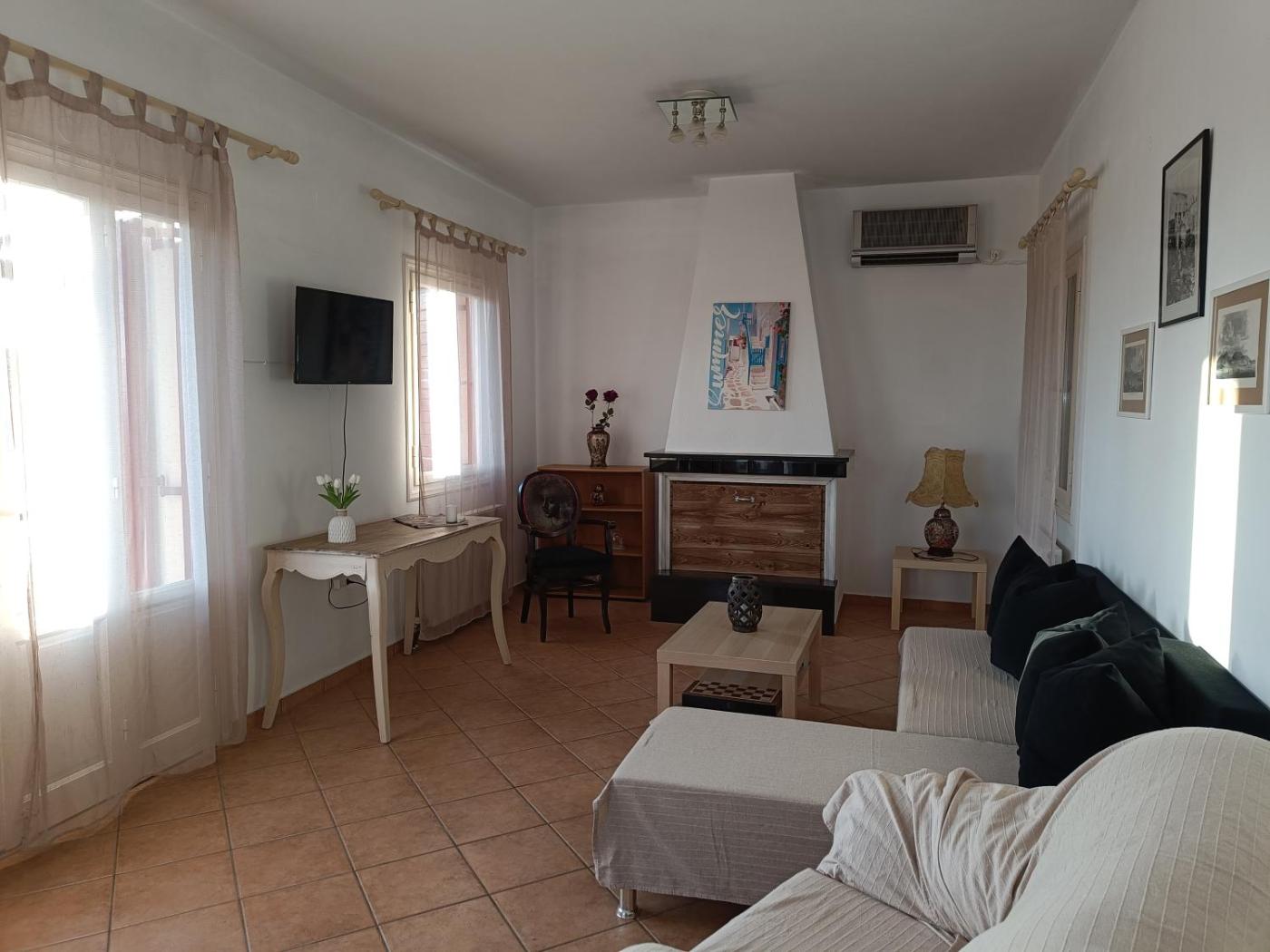 Apartment. This apartment features a fireplace. Featuring a private entrance, this air-conditioned apartment comprises 1 living room, 3 separate bedrooms and 2 bathrooms with a walk-in shower and a bath. Guests will find a refrigerator, kitchenware, an oven and a toaster in the well-fitted kitchen. The apartment also provides guests with a barbecue. The spacious apartment provides a washing machine, a tea and coffee maker, a seating area as well as a terrace with sea views. The unit offers 4 beds.