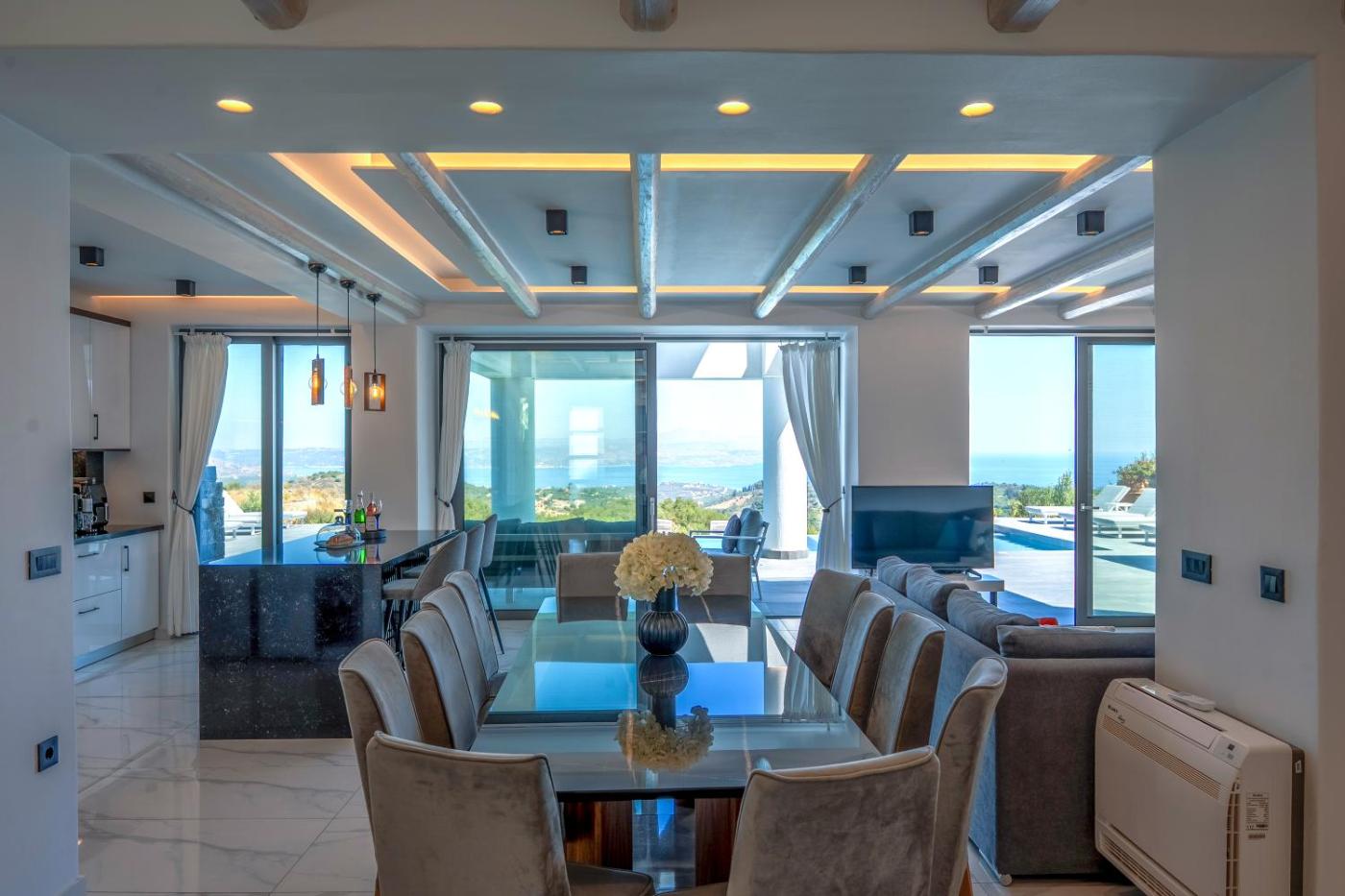 Superior Villa. This villa features a pool with a view, hot tub and fireplace. Boasting a private entrance, this air-conditioned villa includes 1 living room, 6 separate bedrooms and 6 bathrooms with a bath and a shower. Guests will find a stovetop, a refrigerator, a dishwasher and kitchenware in the well-equipped kitchen. The villa also features a barbecue. The spacious villa offers a washing machine, soundproof walls, Smartphone, a flat-screen TV with streaming services, as well as sea views. The unit has 9 beds.