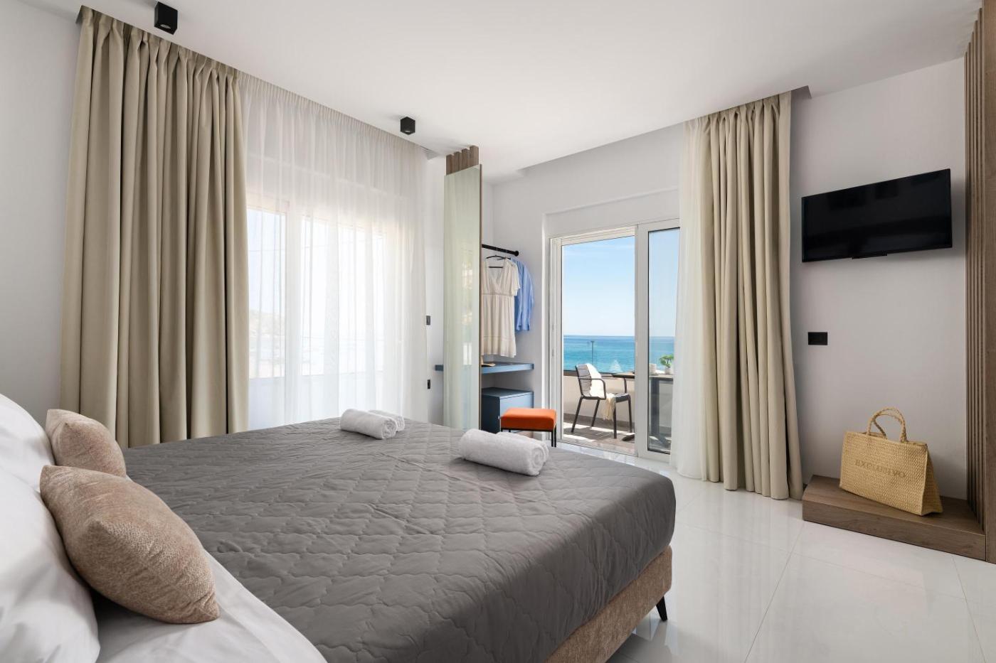Amaltheia Residence. The air-conditioned suite features 1 bedroom and 1 bathroom with a shower and a hairdryer. In the well-equipped kitchenette, guests will find a stovetop, a refrigerator, kitchenware and an oven. This suite has a washing machine, flat-screen TV with satellite channels, sea views, as well as winechampagne for guests. The unit offers 2 beds.